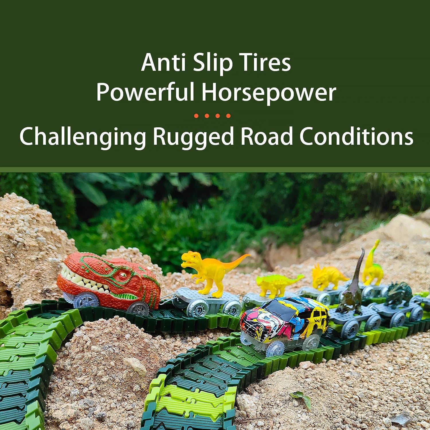 Let your kids create their very own dinosaur race world – full of lights, tracks, and wild imagination! 🦖🚗✨