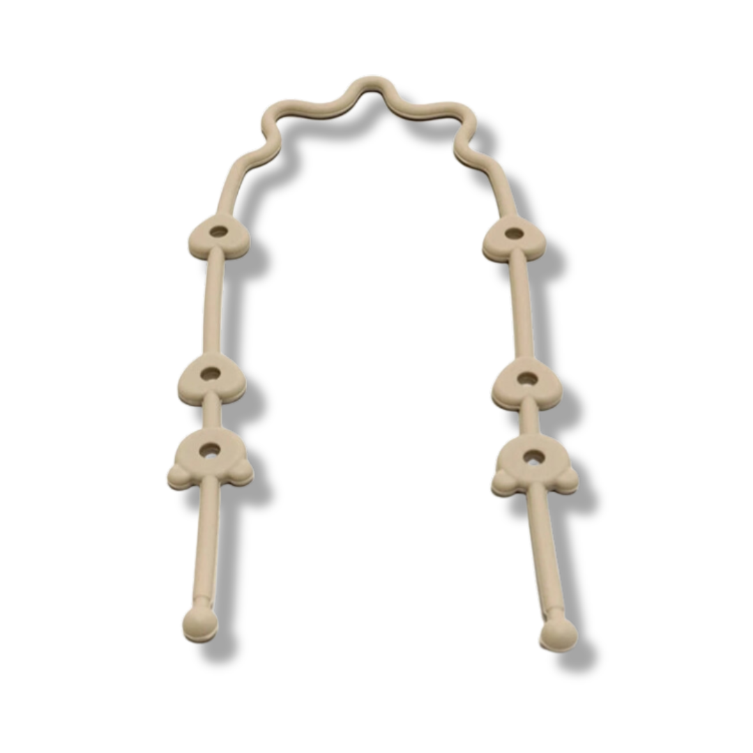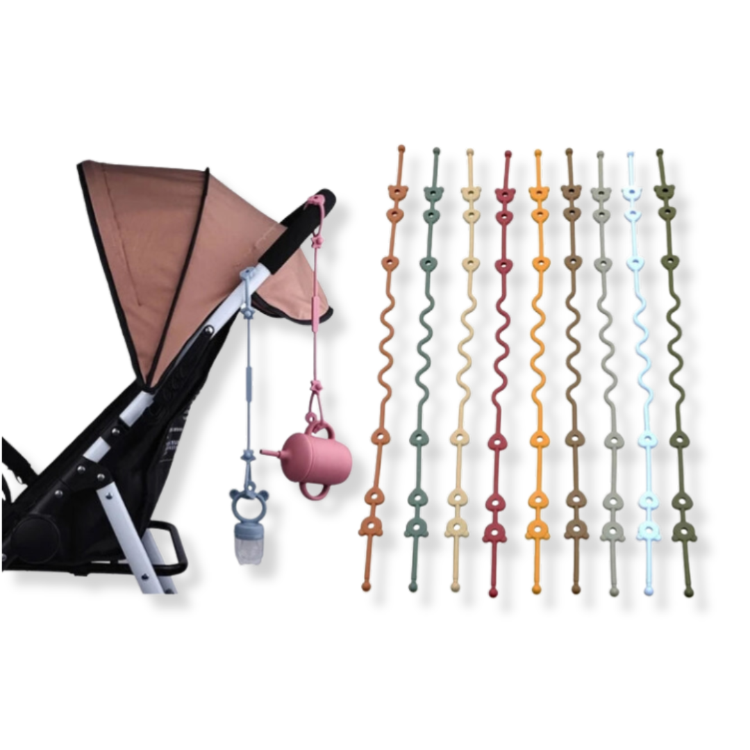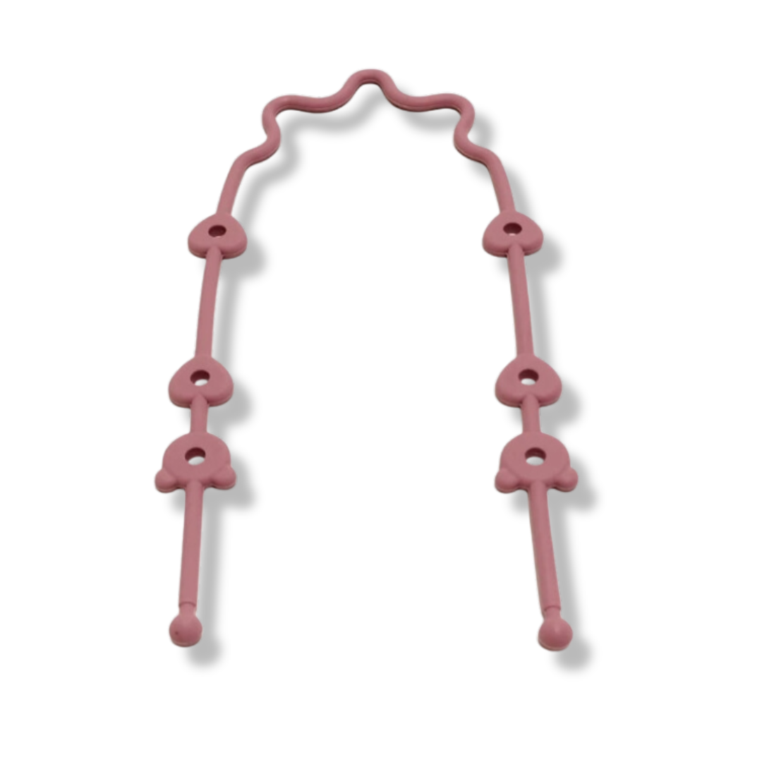Discover the practical baby pacifier chain with safety straps! This versatile pacifier chain is equipped with a flexible silicone holder that securely grips the pacifier, ensuring it stays within reach at all times. Whether in the stroller or high chair, with this pacifier chain, you won't have to worry about the pacifier falling on the floor or getting lost.
